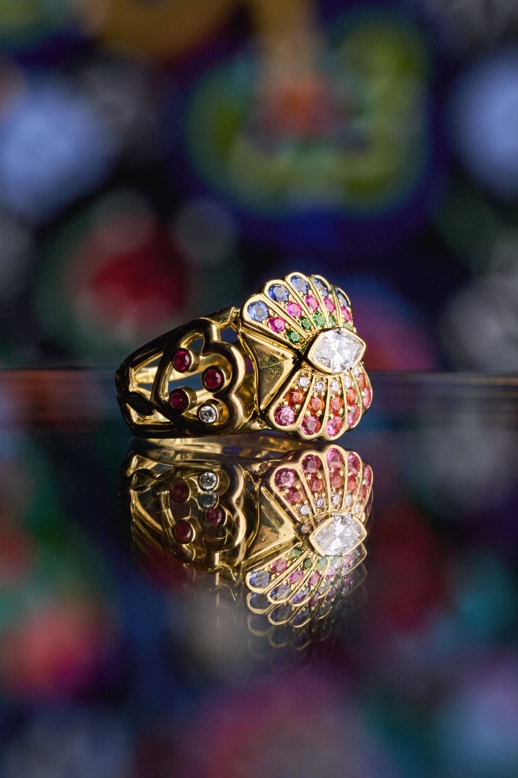 Inspired by the original work “Garden of Dreams”, the ring brings together the three symbols dear to the artist: