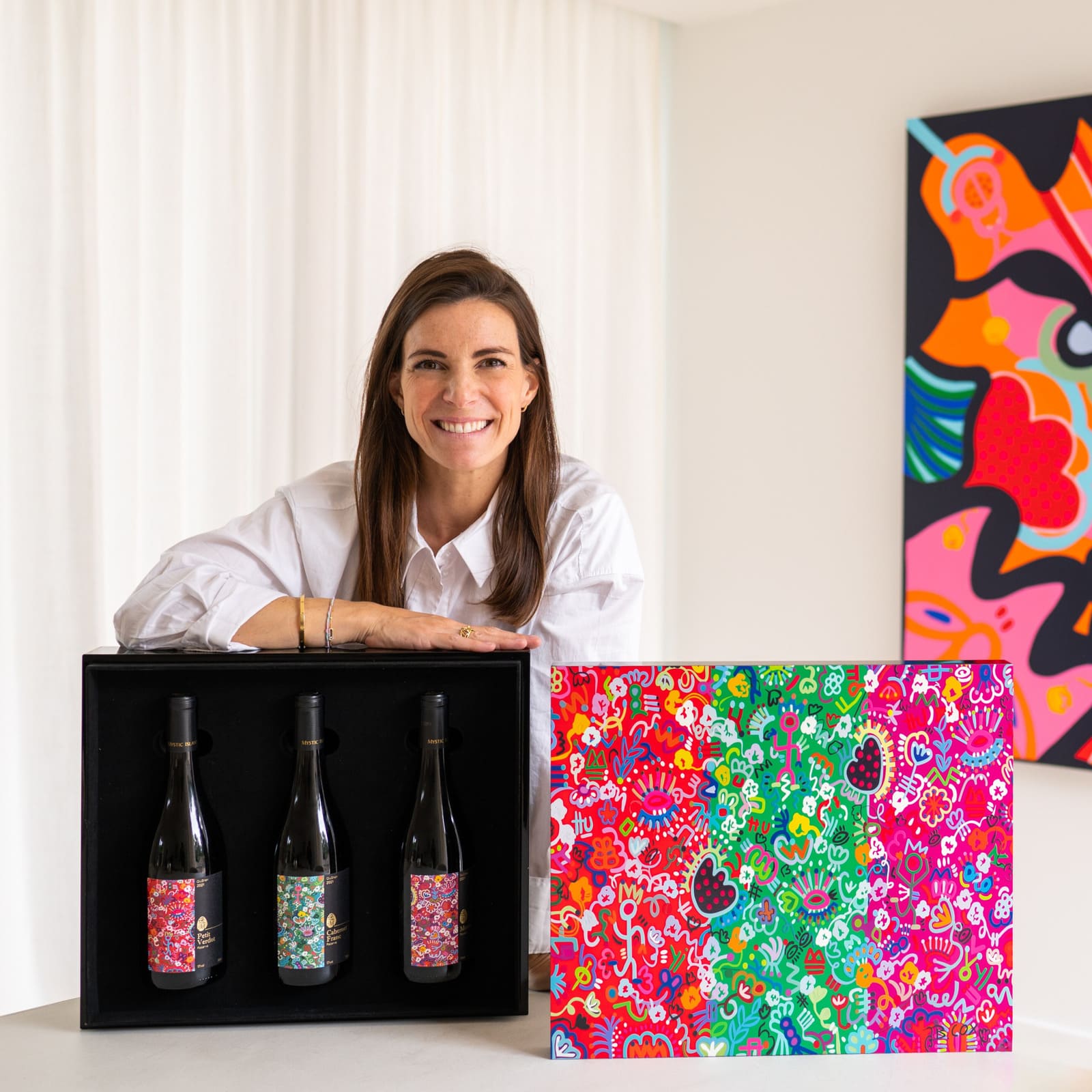 “I believe that wine and art are intrinsically linked: oenology, like painting, is a quest for nuances, emotions and sensations. It is undoubtedly this shared vision that brought me closer to Rita, founder of Mystic Island Winery. Through our respective careers — hers in wine, mine in art — we share the same conviction: anything is possible when you dare to follow your dreams.”