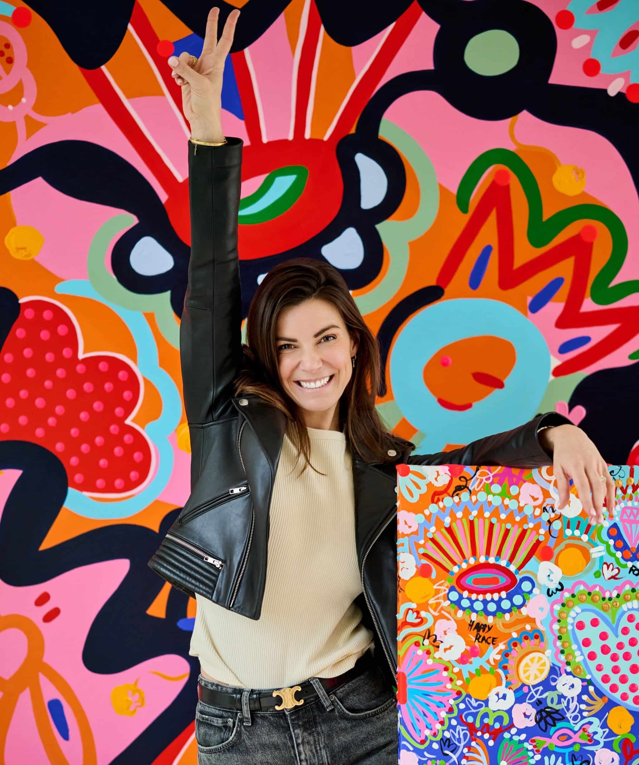 Generous, spontaneous, passionate and madly in love with life, she opens the doors to her world to her community: a glimpse into her studio, a journey through her colours, previews of her work and all her latest news – exhibitions, openings, collaborations and much more.